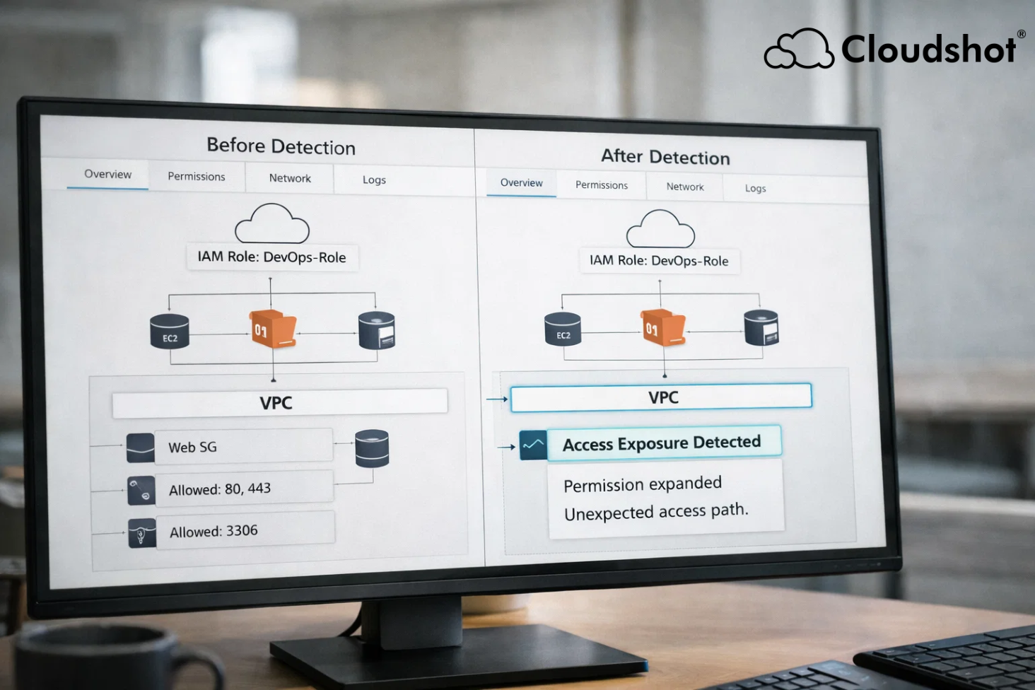 Cloudshot delivers 24/7 cloud security and compliance monitoring across AWS, Azure, and GCP. Eliminate IAM drift, policy gaps, and audit risks—automatically.